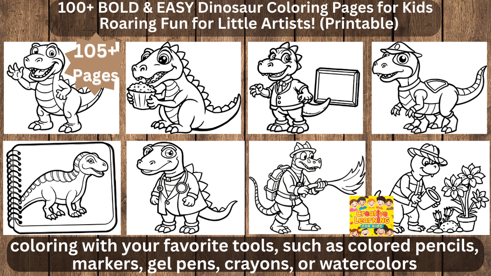 Dinosaur 100+ BOLD & EASY Coloring Pages for Kids β Roaring Fun for Little Artists! (Printable)